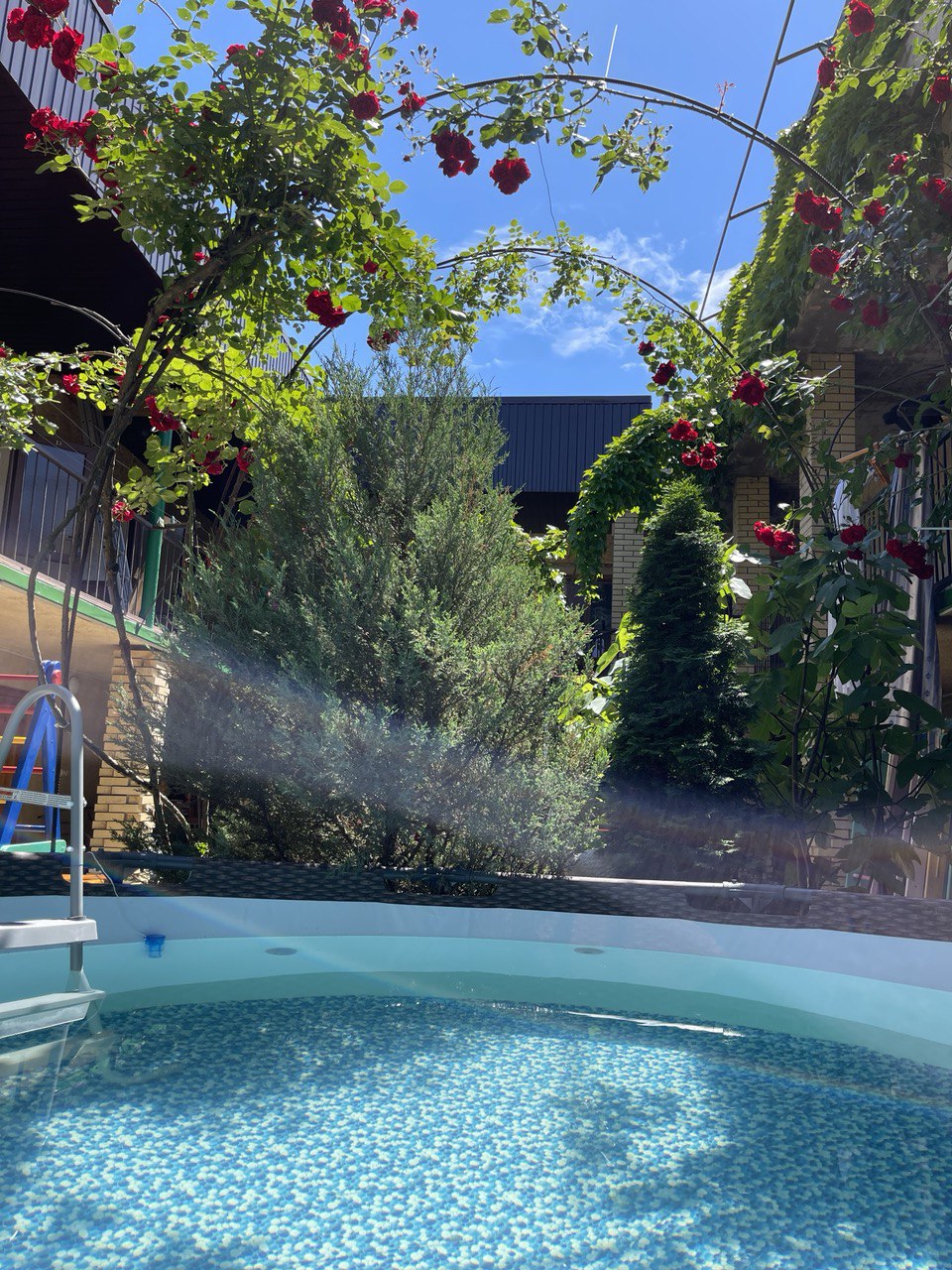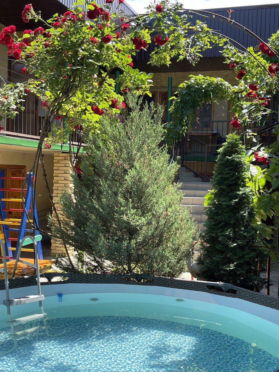 Комфортные просторные номера с удобствами, зелёная территория, подогреваемый бассейн, лаунж-зона, Бар с прохладительными напитками,