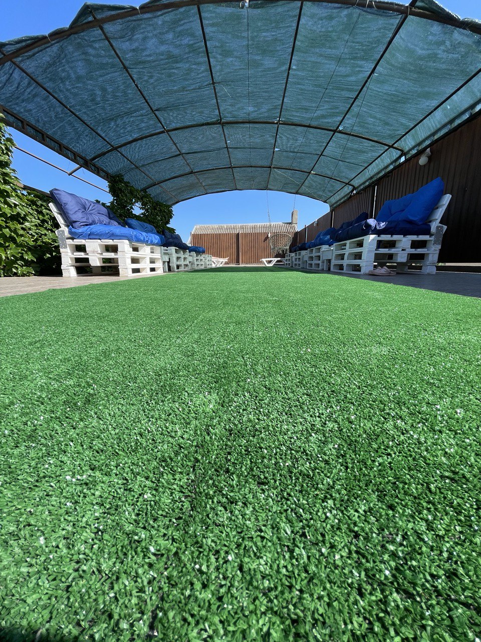 - На верхней террасе - лаунж зона с шезлонгами и зонтами.
