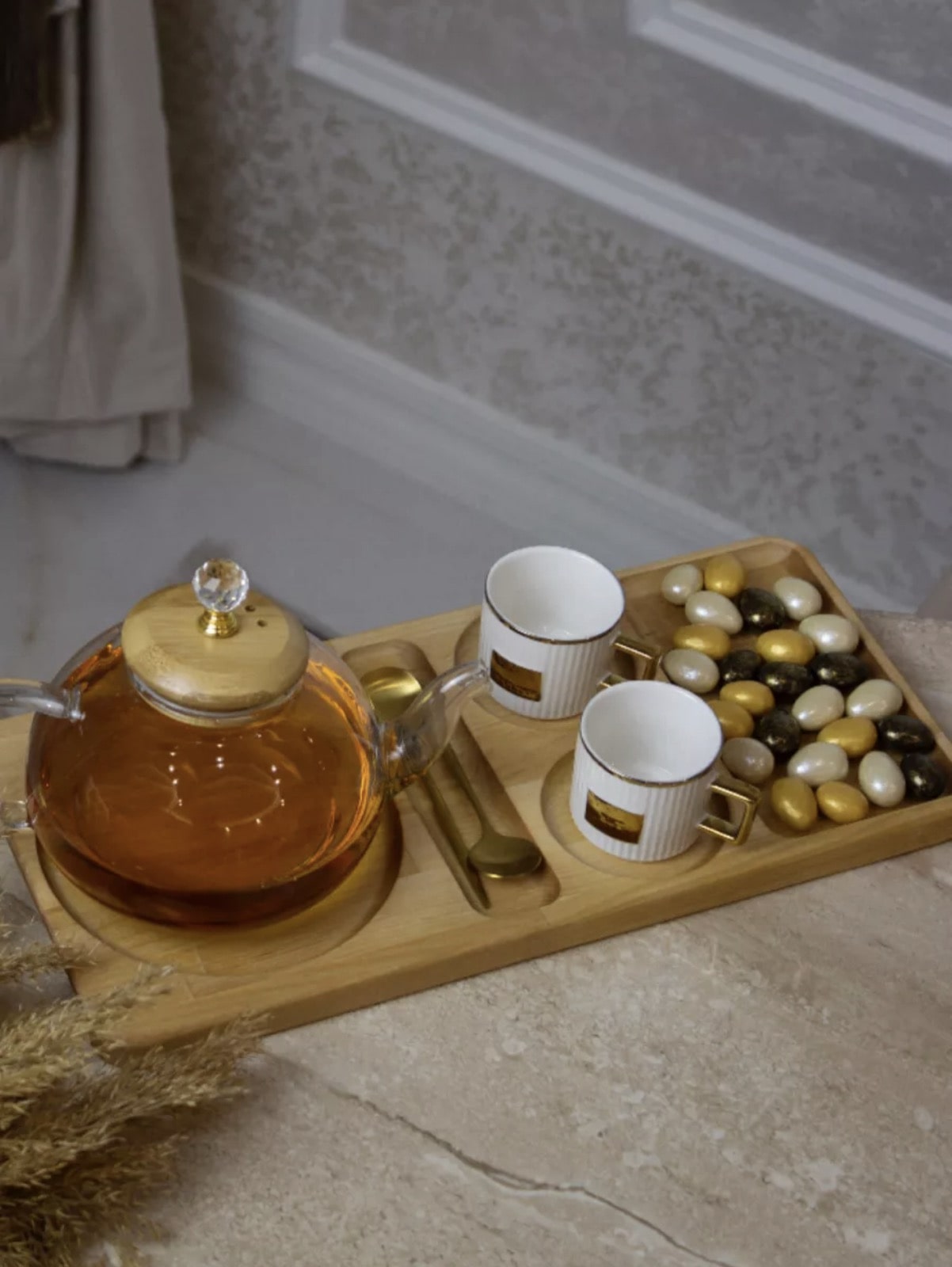- Чайная станция с комплектом кофе, чаем, сахаром, ложками, тарелками и бокалами;